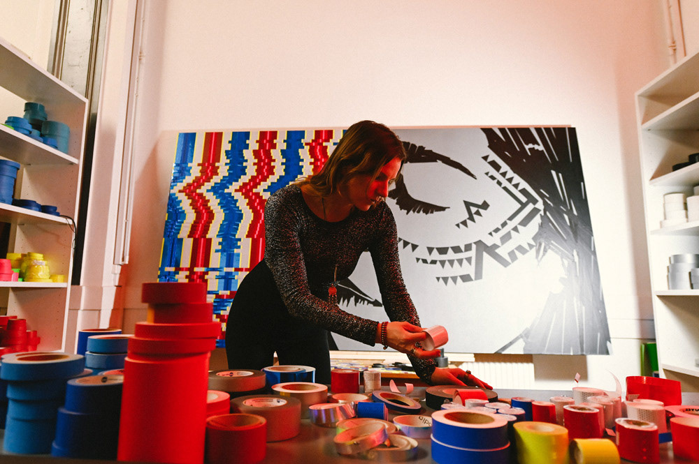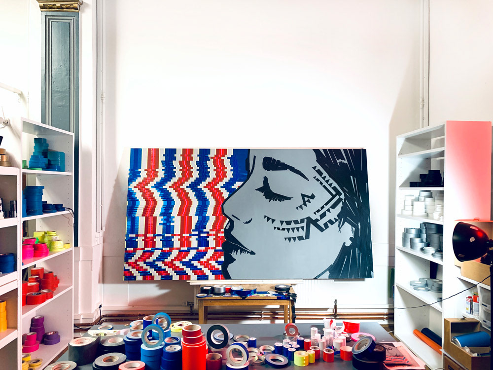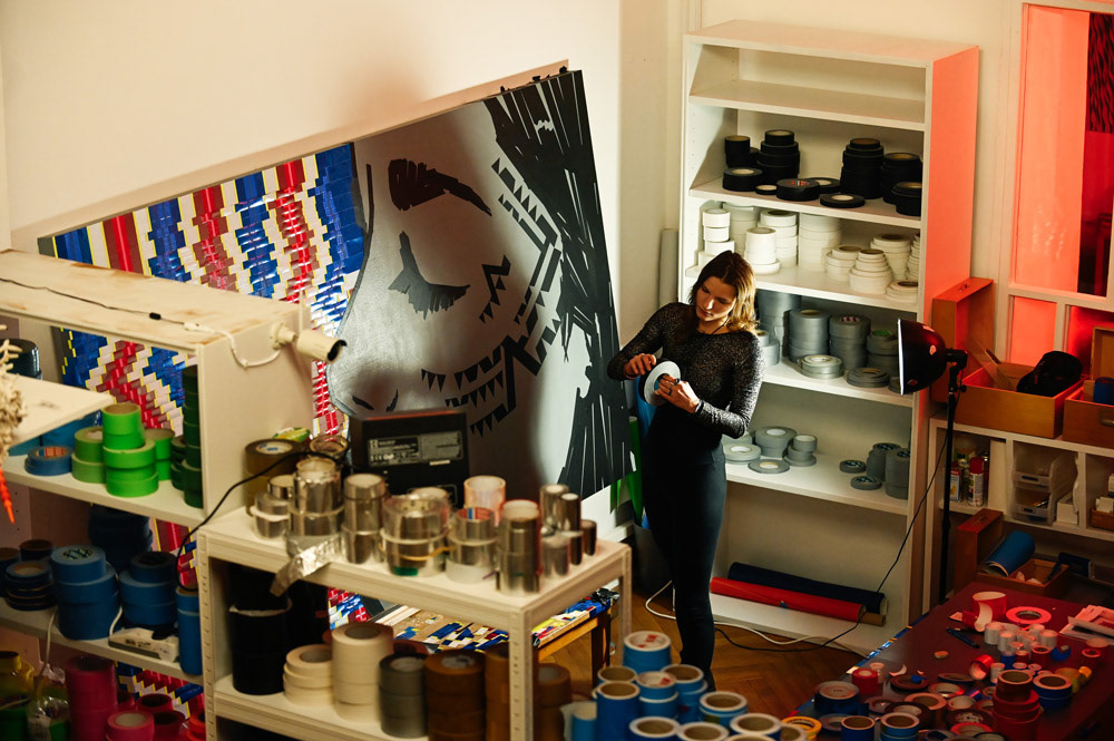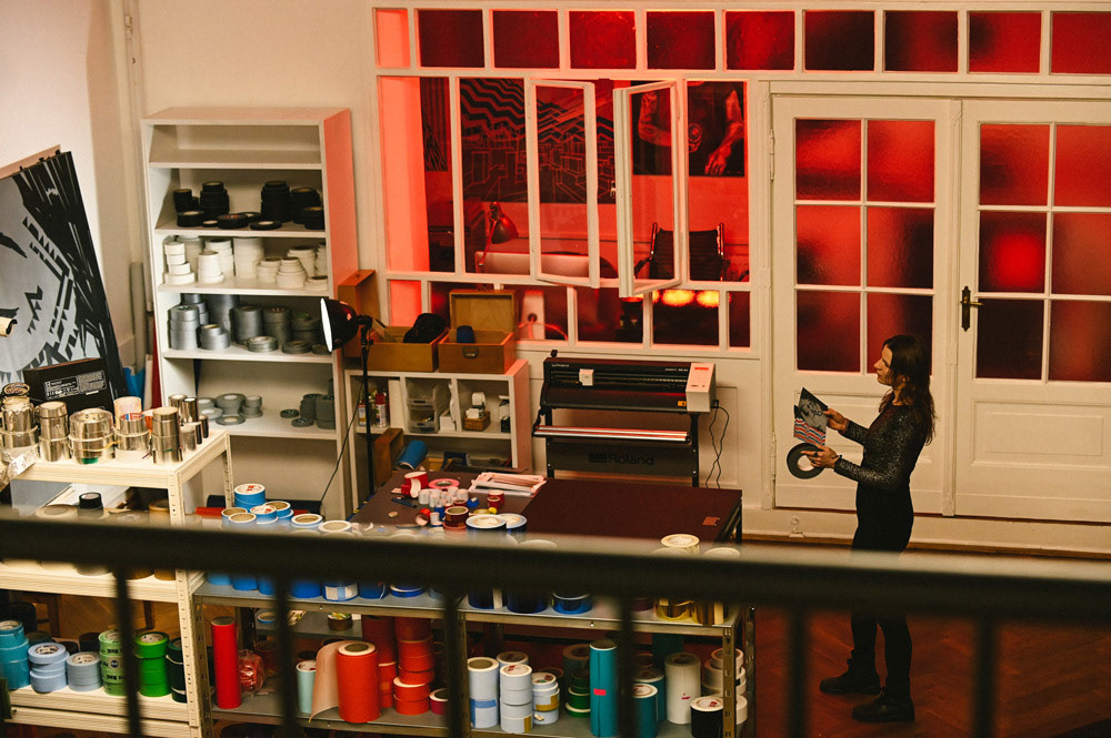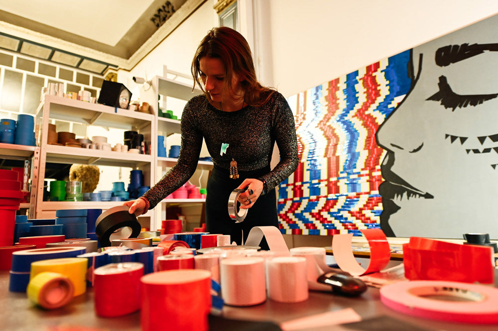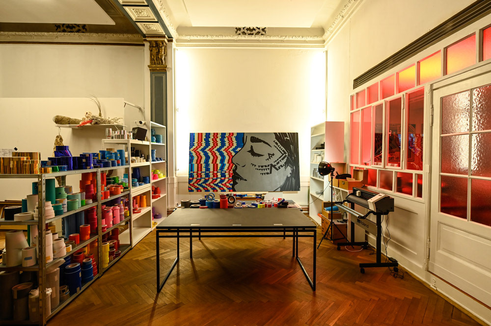We showcased LaMias's tapeart piece at the Prachtsaal Studio in Berlin. Seh tape that using different kind of tapes and adhesive foils.