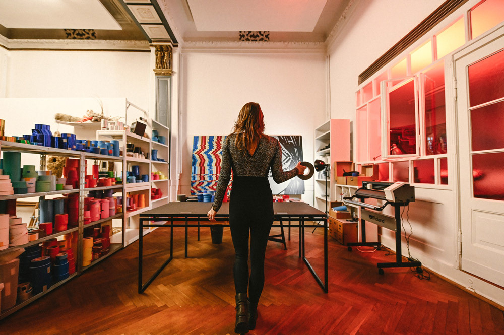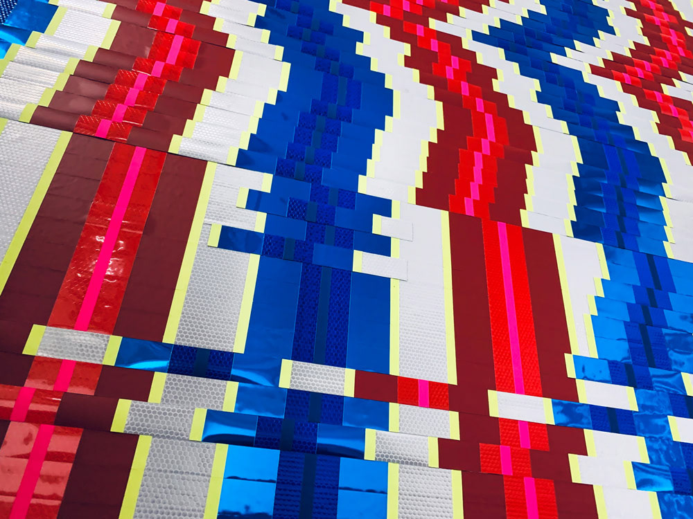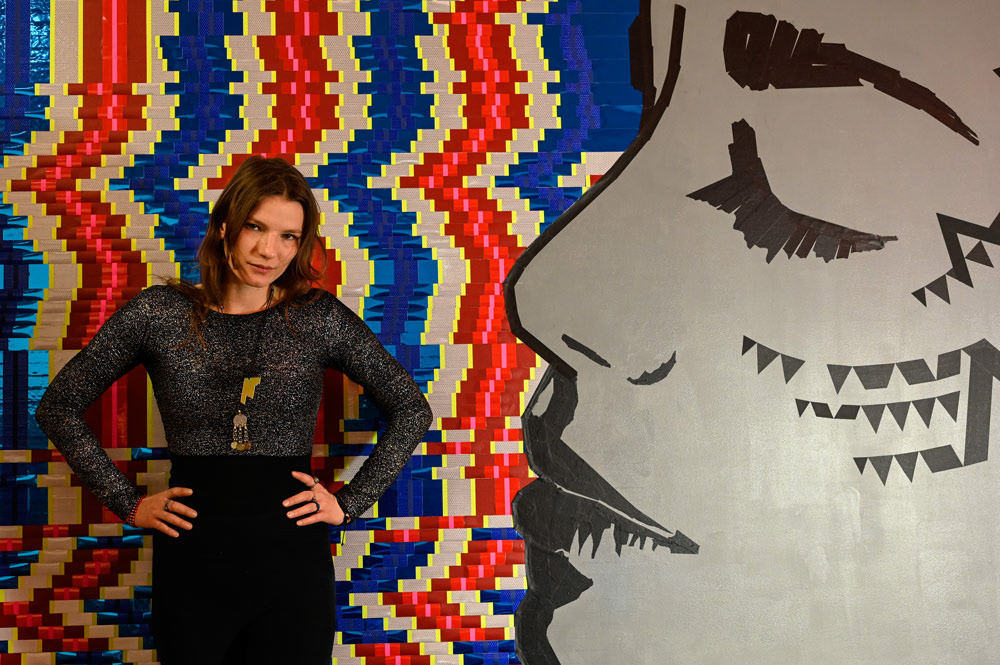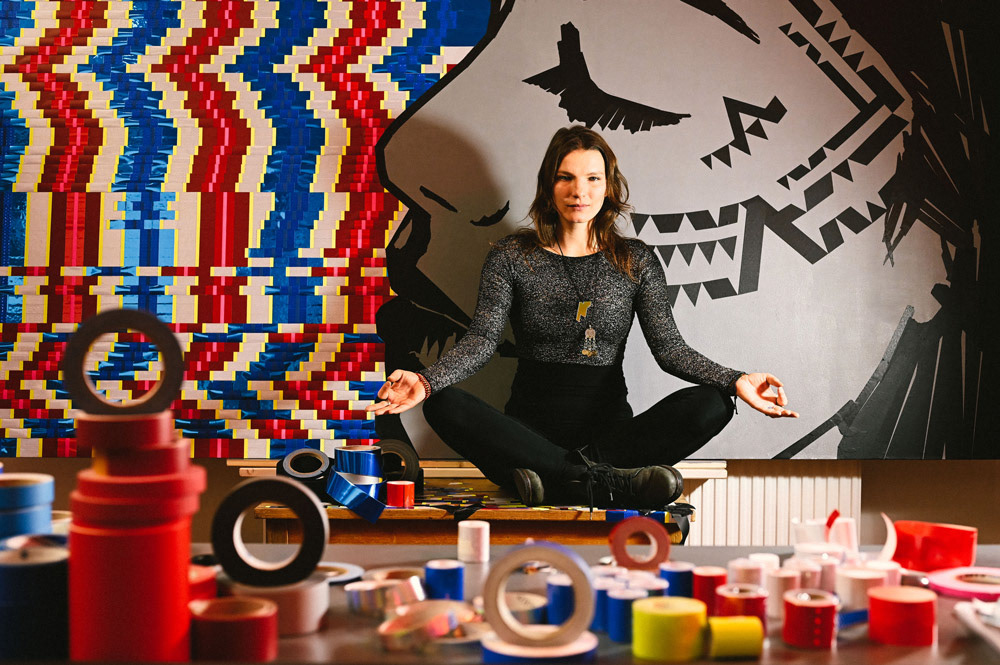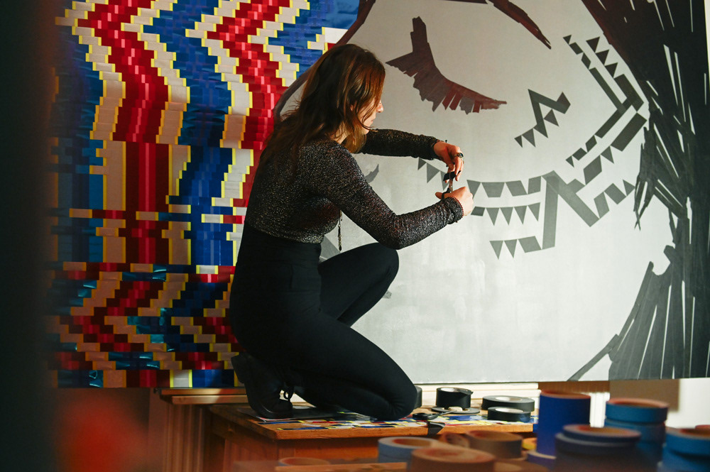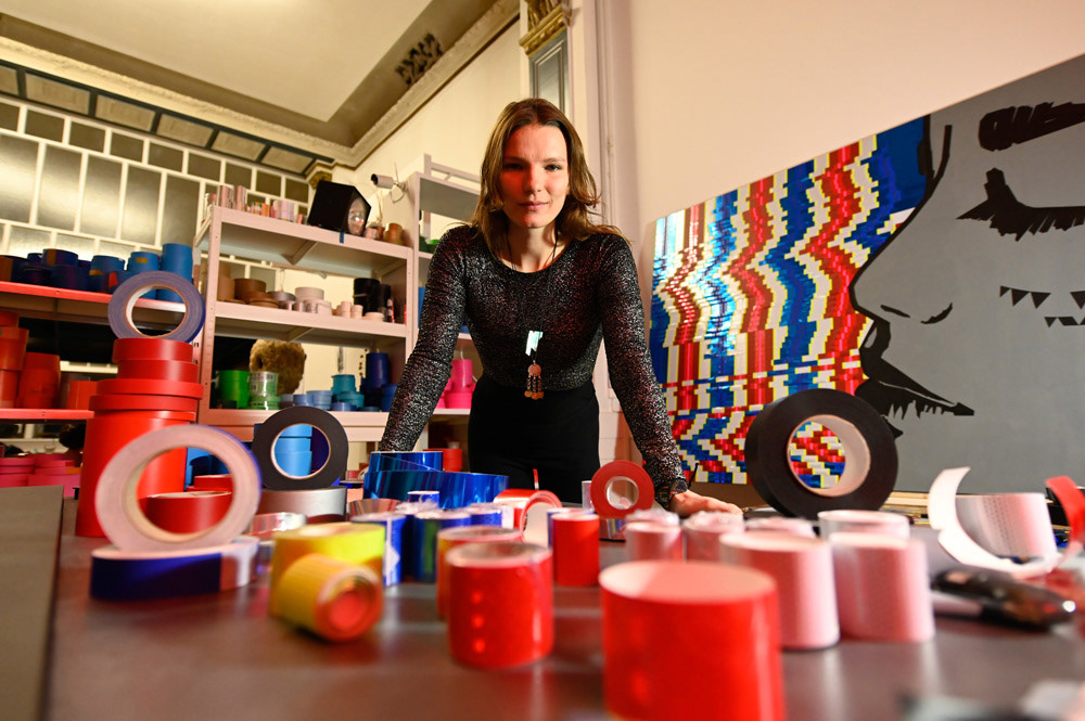 We showcased LaMias's tapeart piece at the Prachtsaal Studio in Berlin. Seh tape that using different kind of tapes and adhesive foils.