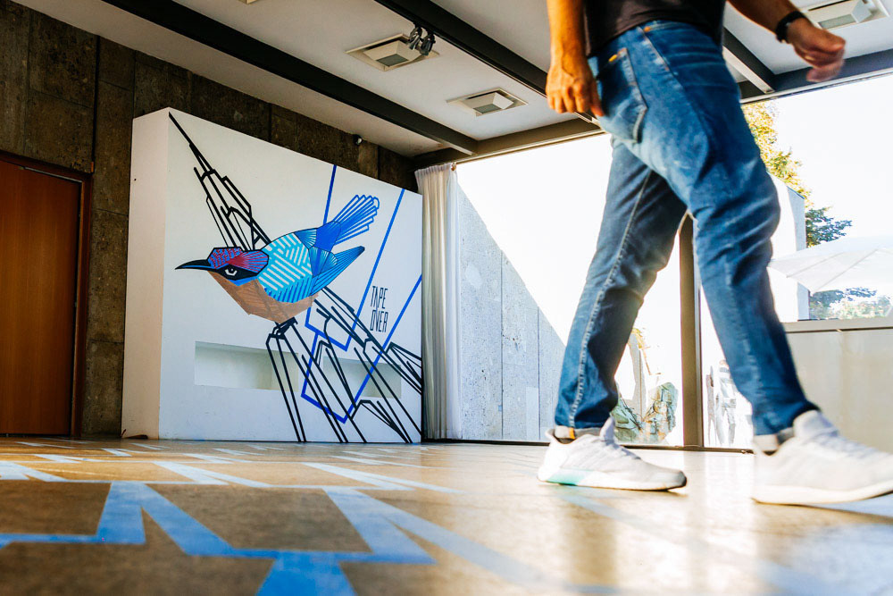 ADC - Art Directors Club Germany invited us for a tape art showcase at its annual design conference. For this event, we created a tapeart mural and some design on the floor in order to show how versatile this art form is. Moreover, we gave a speech about how we work as TAPE OVER CREW and what kind of projects we did over the past years.