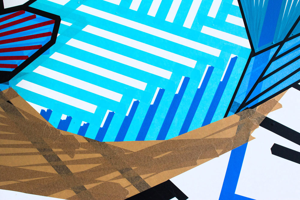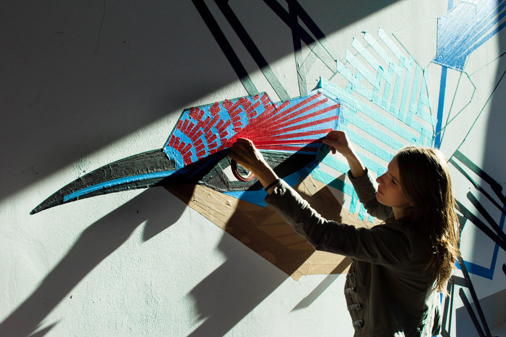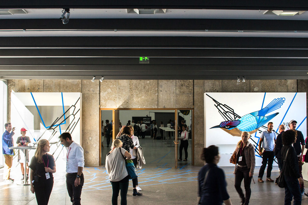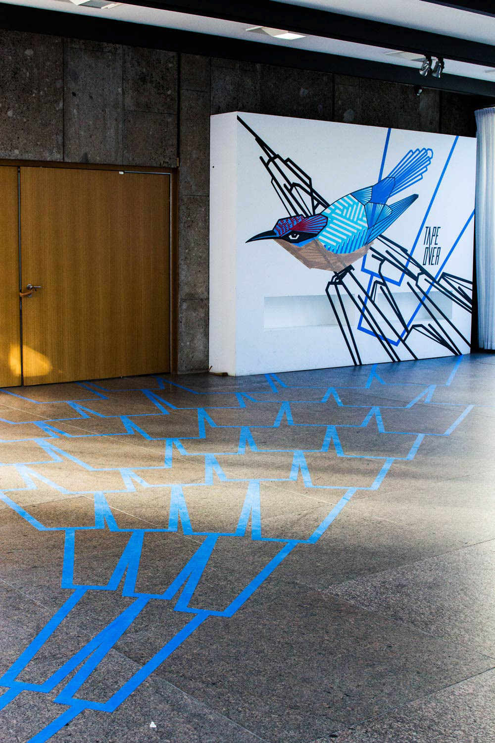 titel // tape art showcase type // tape art mural size // 6x3m material // duct tape & crepe tape in different colours artists // LaMia & ROB place // design experience conference in stuttgart/germany