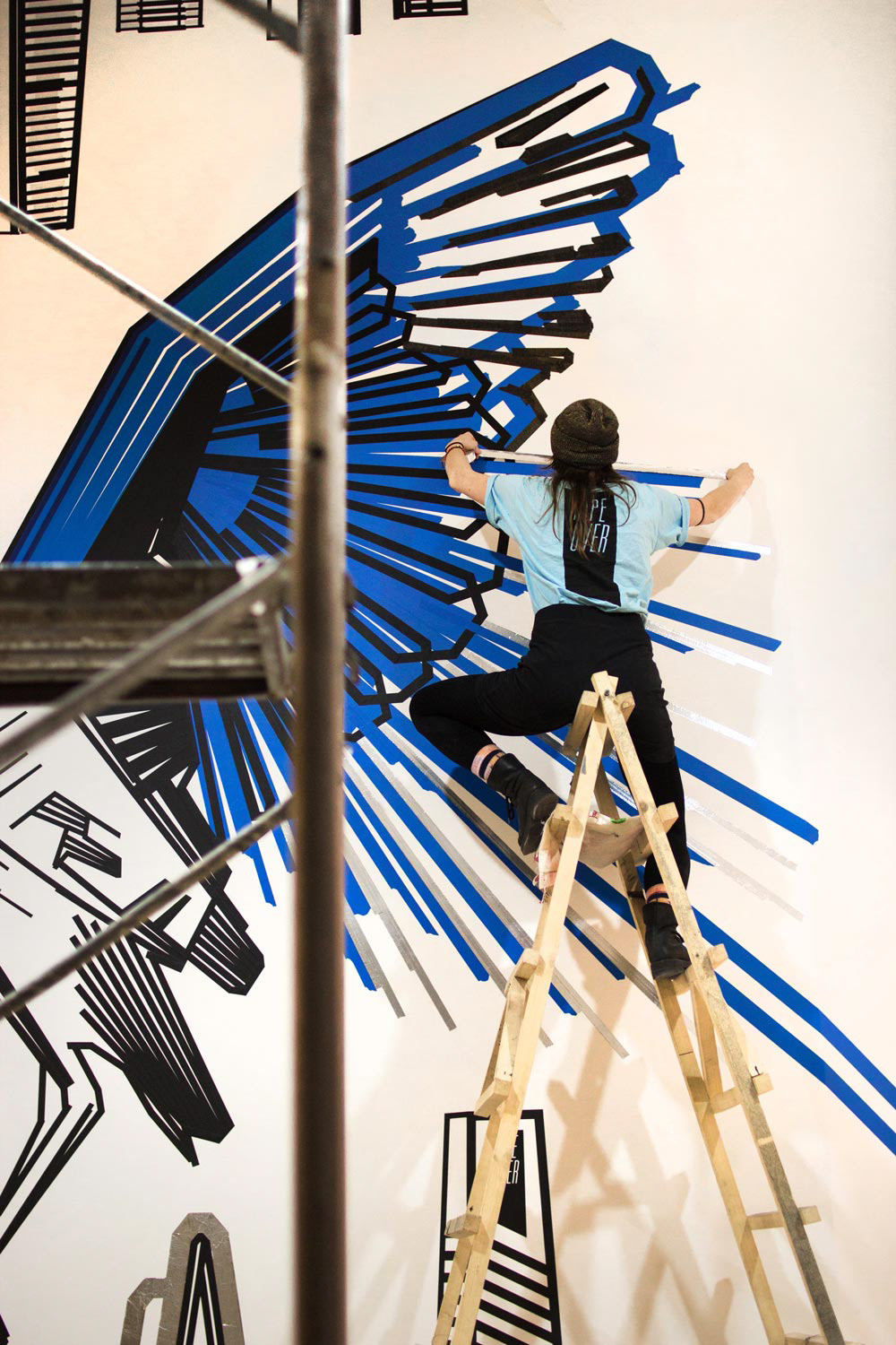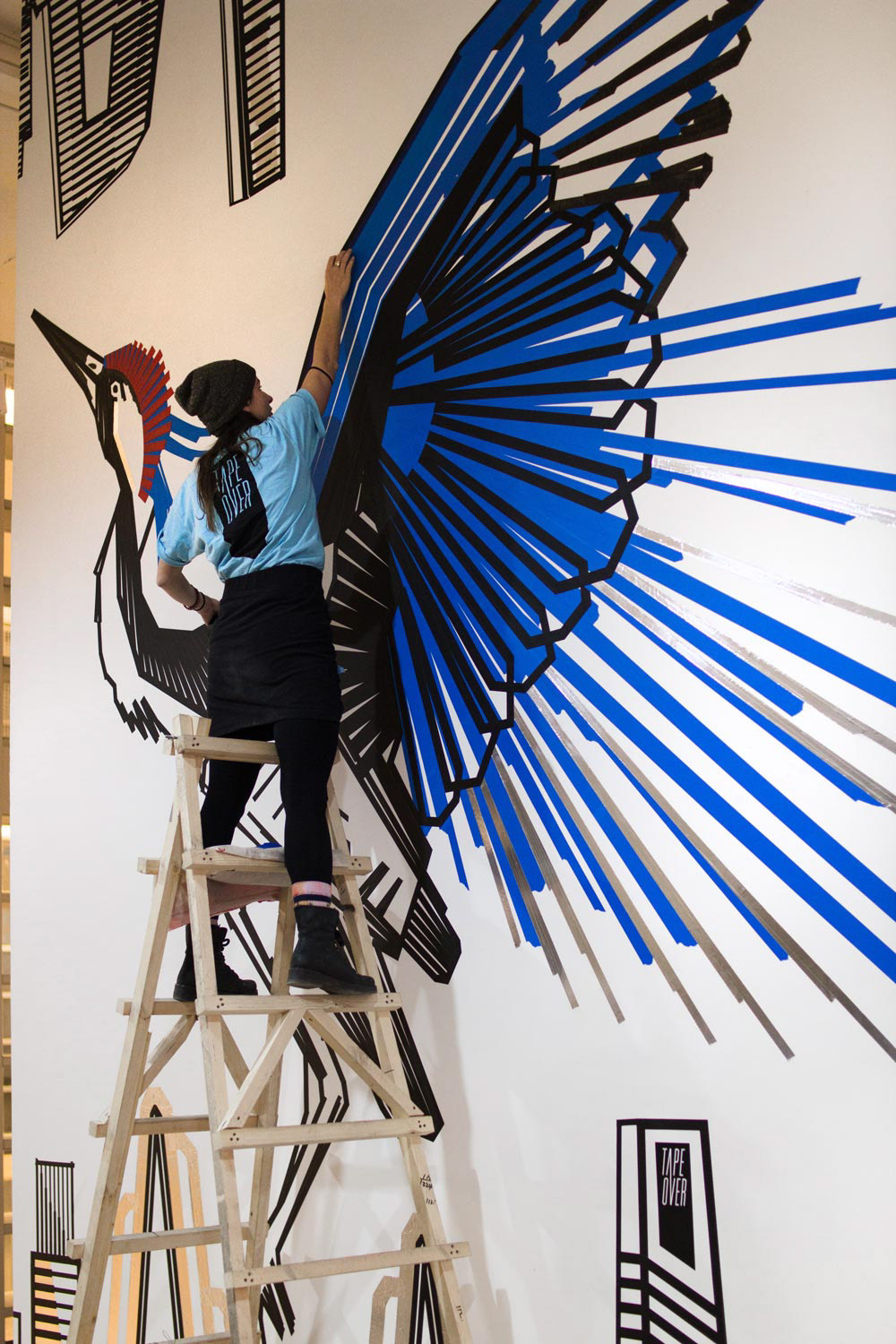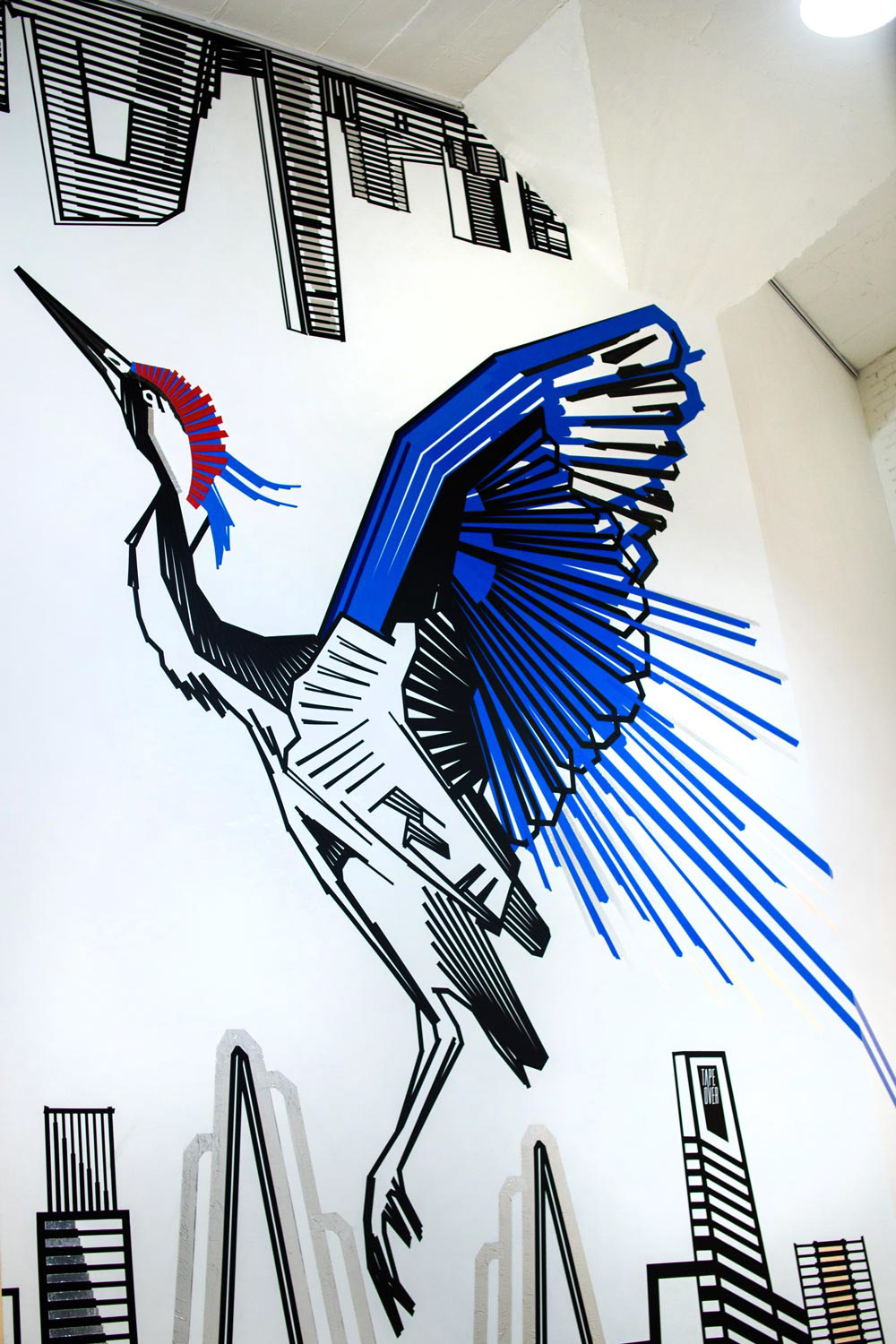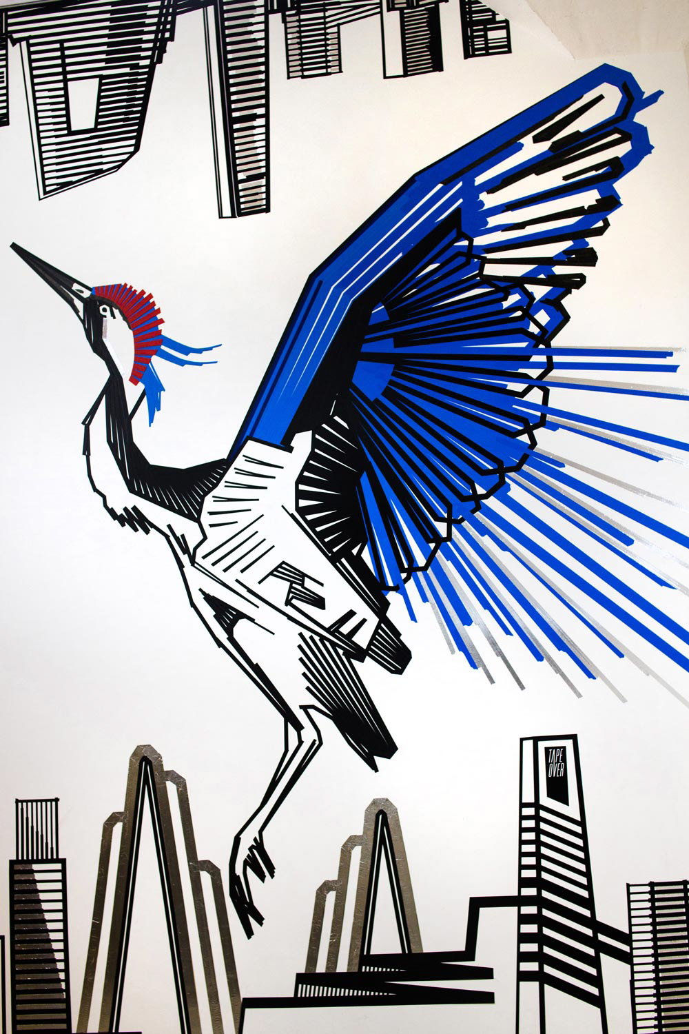 title // crane type // tapeart mural size // 4x7m material // duct tape artists // LaMia & ROB place // beijing / china