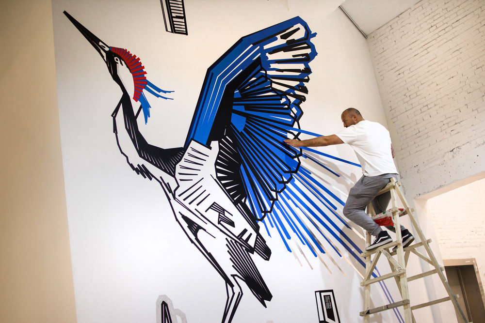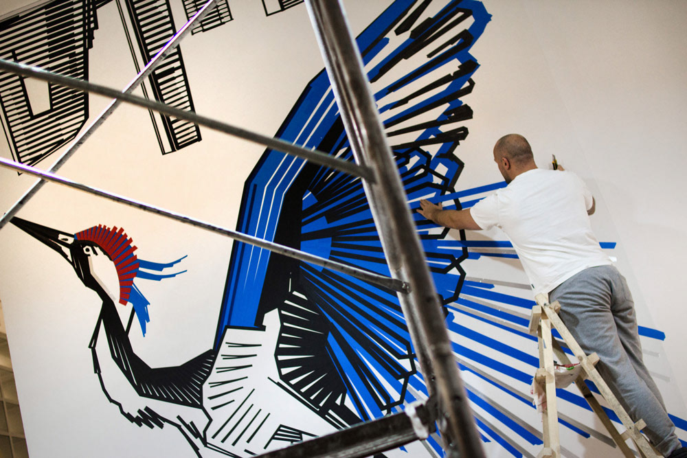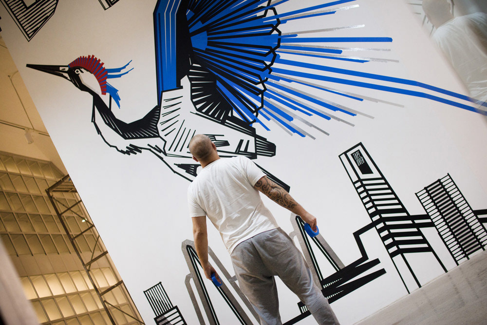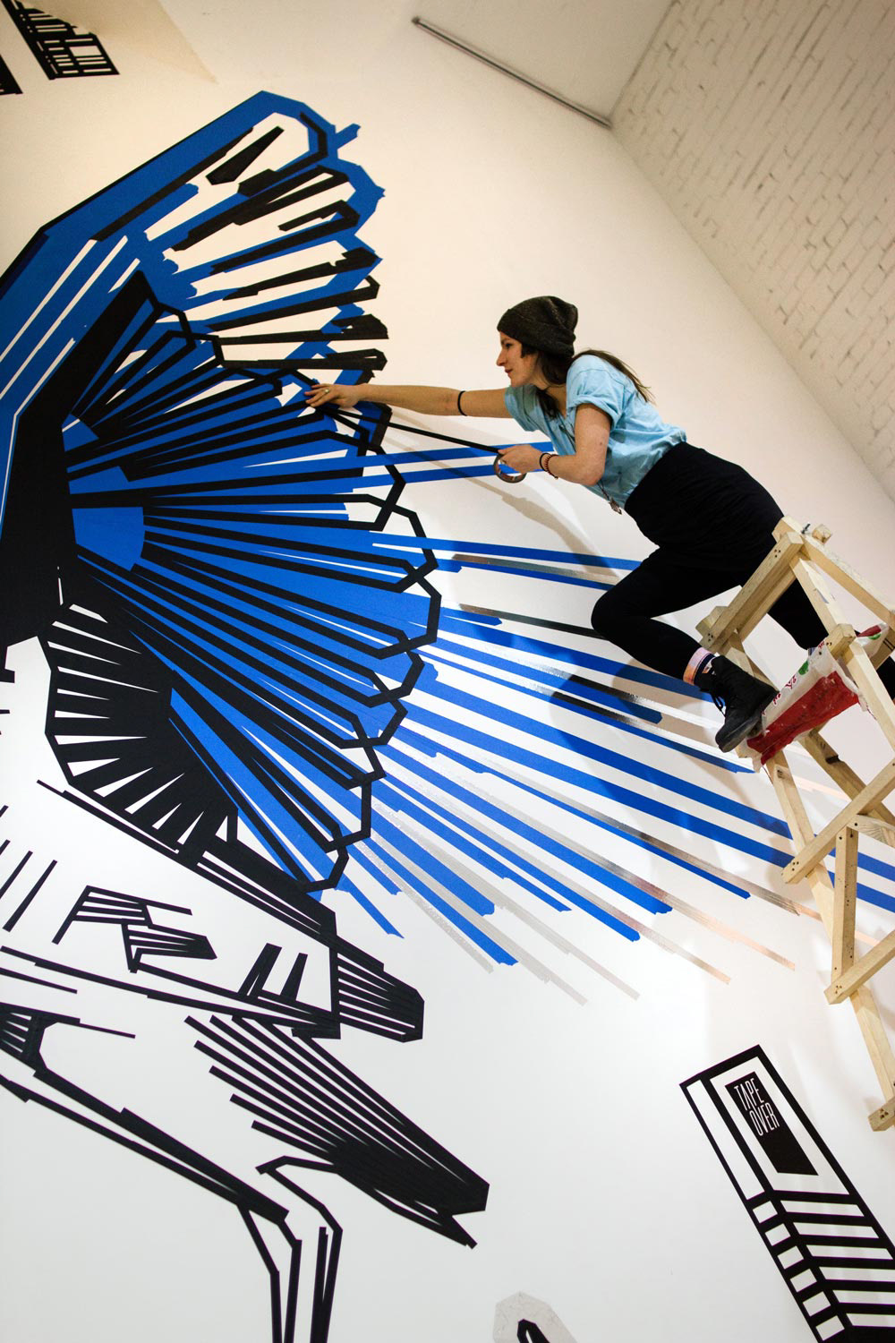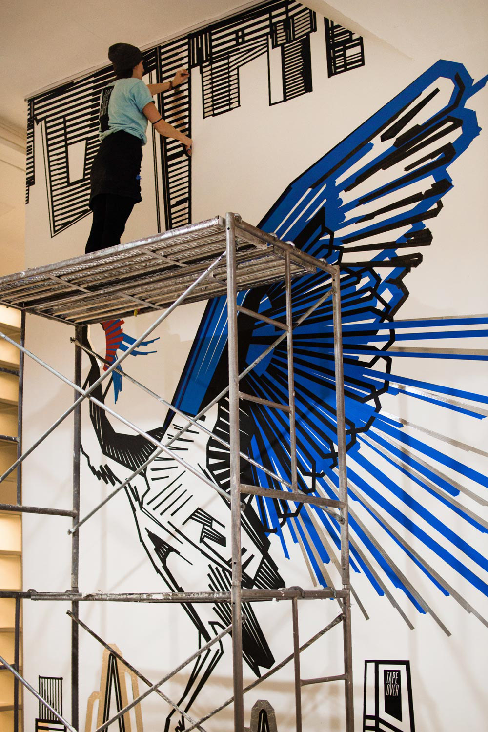 title // crane type // tapeart mural size // 4x7m material // duct tape artists // LaMia & ROB place // beijing / china