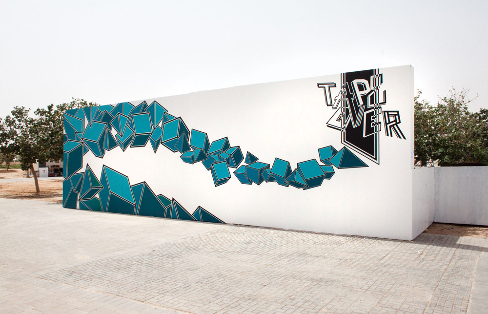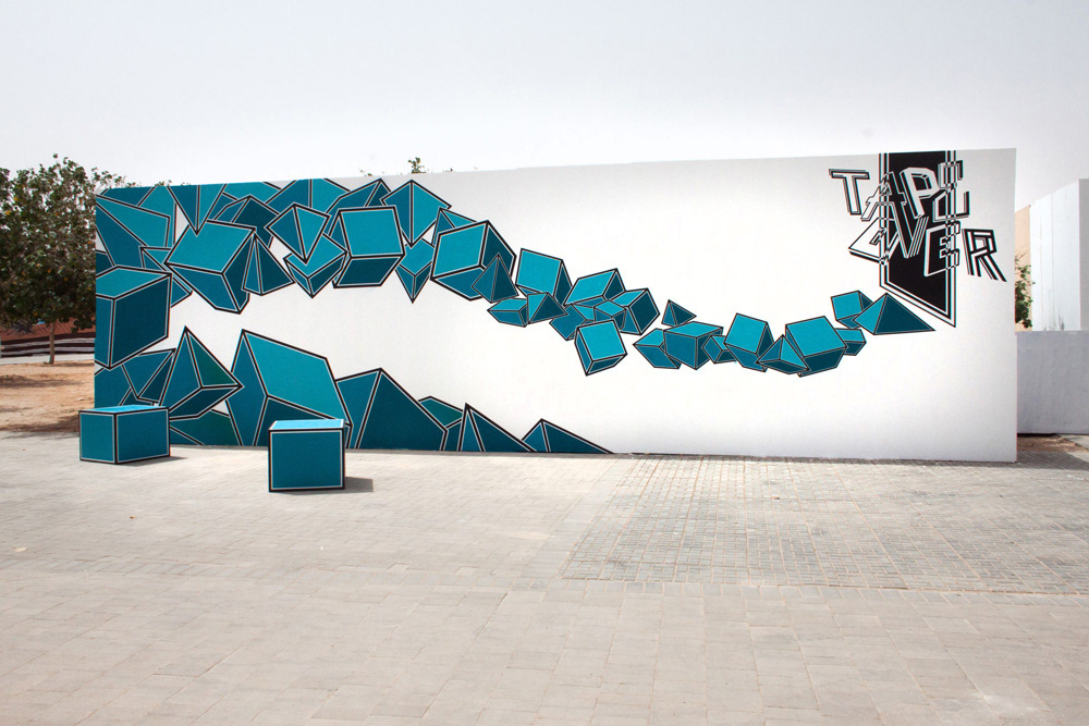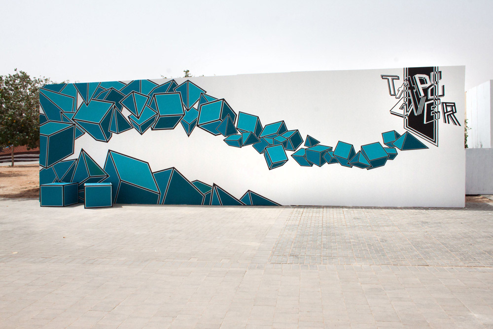 title // flow type // tapeart & graffiti mural size // 12x4m material // duct tape & spry paint artists // MR GALLE & ROB place // riyadh / saudi arabia