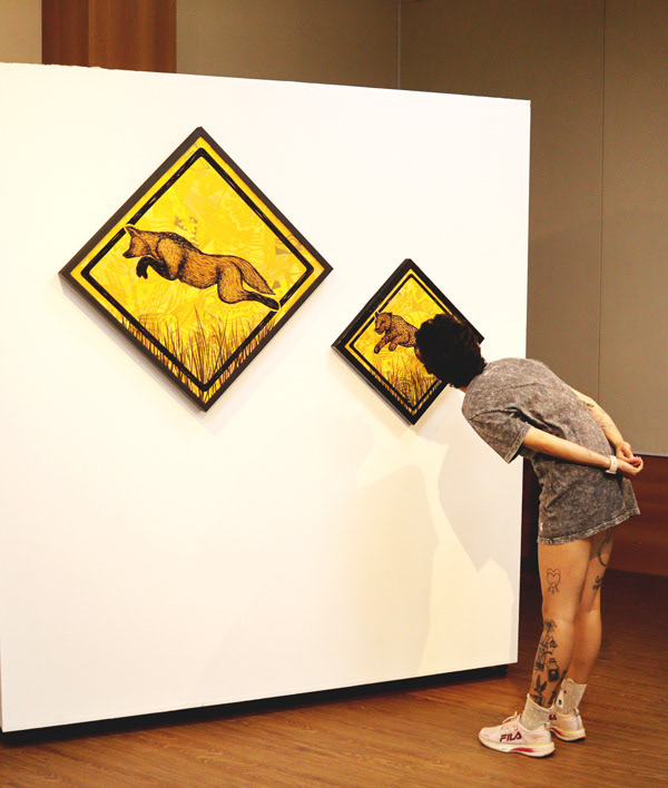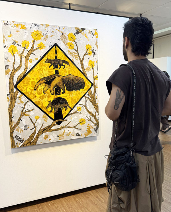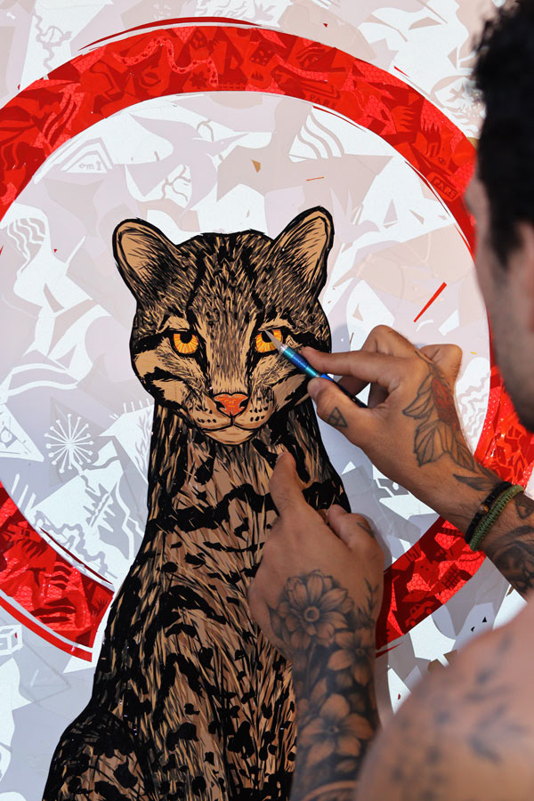 artist name // Ju & João origin // brasil quote // we transform industrial materials into detailed compositions that celebrate biodiversity and urban aesthetic sticker skills // precision of the surgical scalpel with the versatility of adhesives, creating pieces that range from geometric abstracts to the wildlife and nature of the Brazilian Cerrado