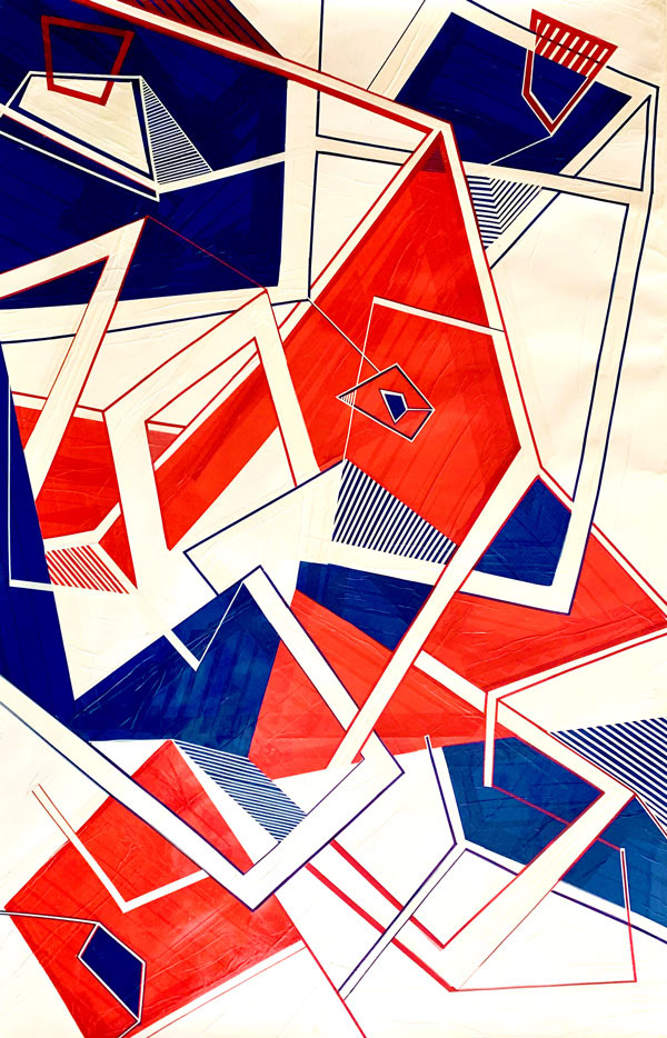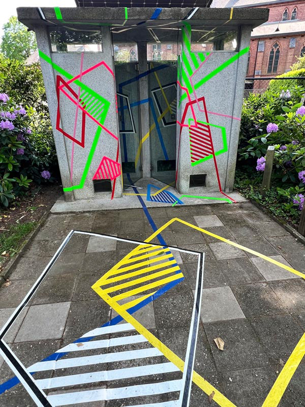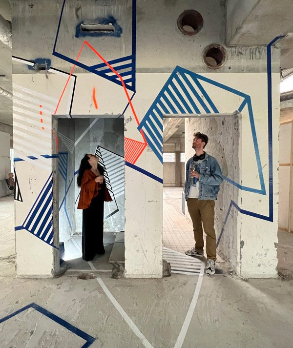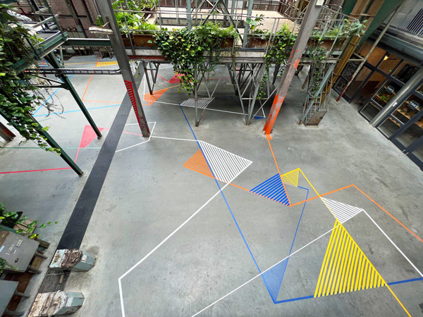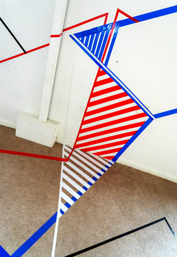 artist name // Nelleke Bosland origin // the netherlands quote // Transforming the frames of architecture into a rhythmic play of tape, light, and movement. skills // spatial hacker, analog-digital weaver, visual choreographer