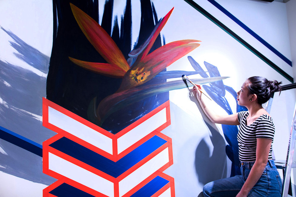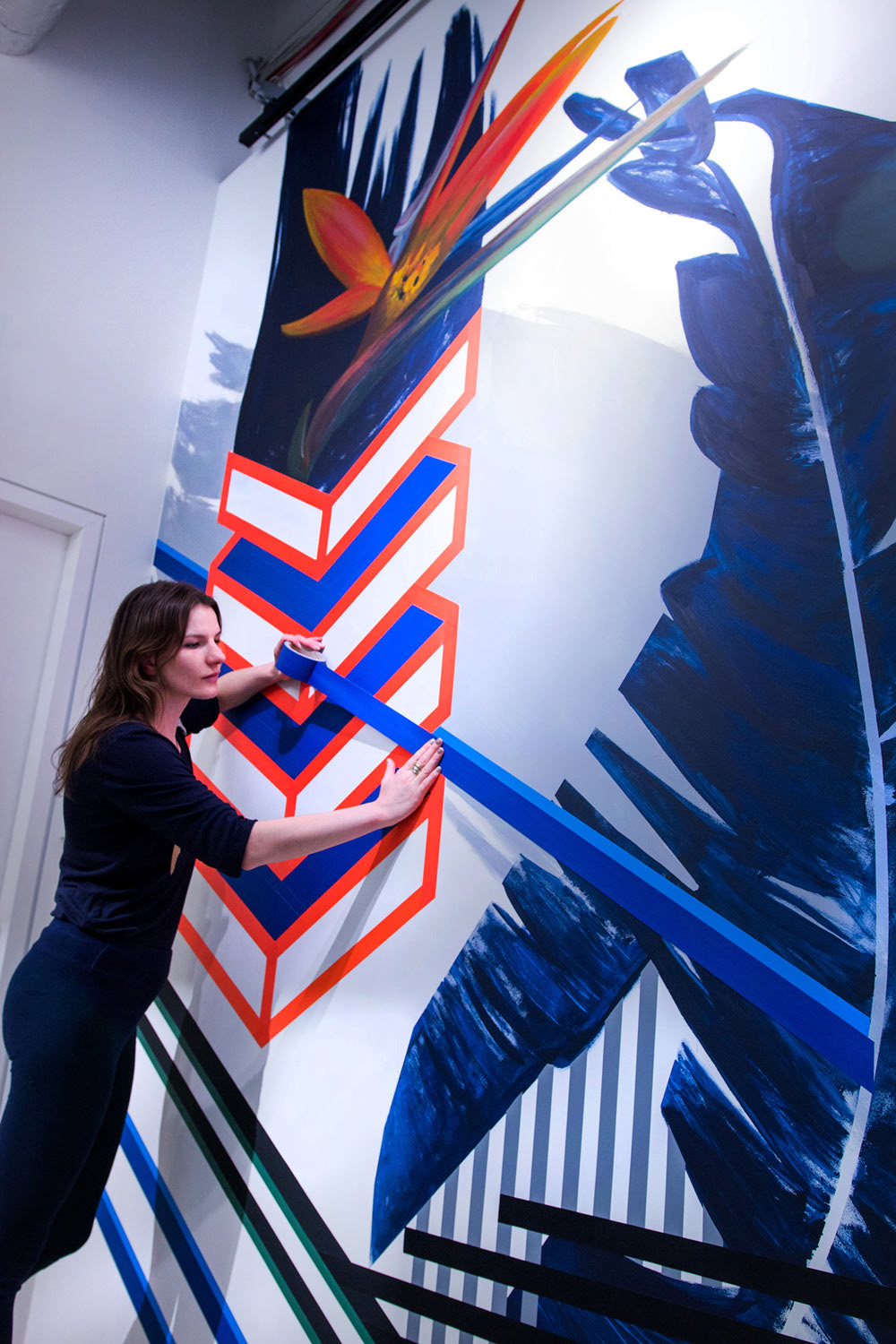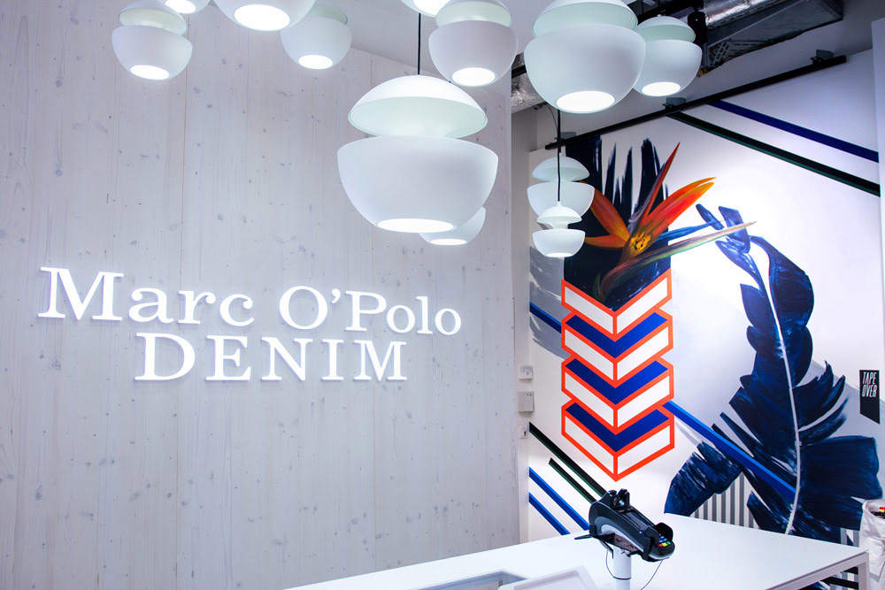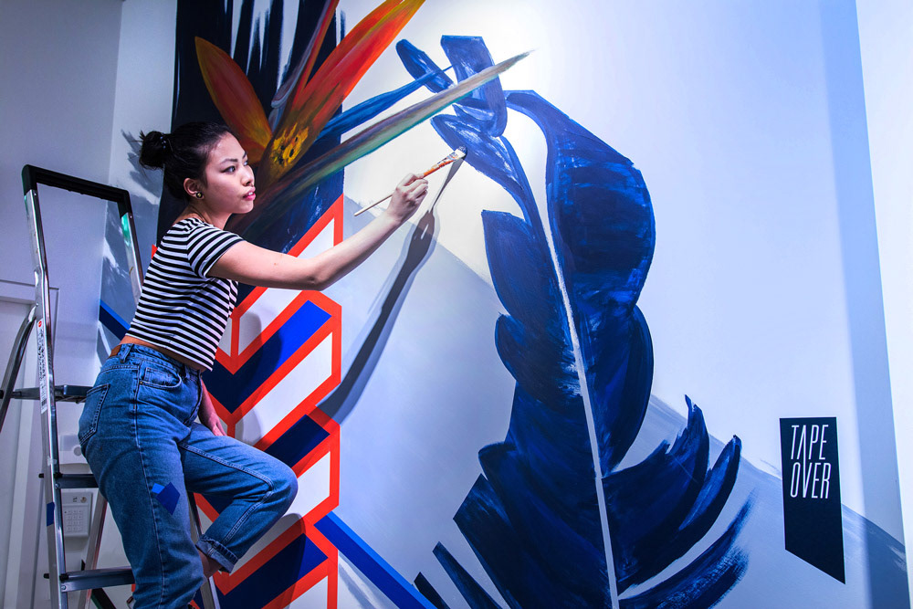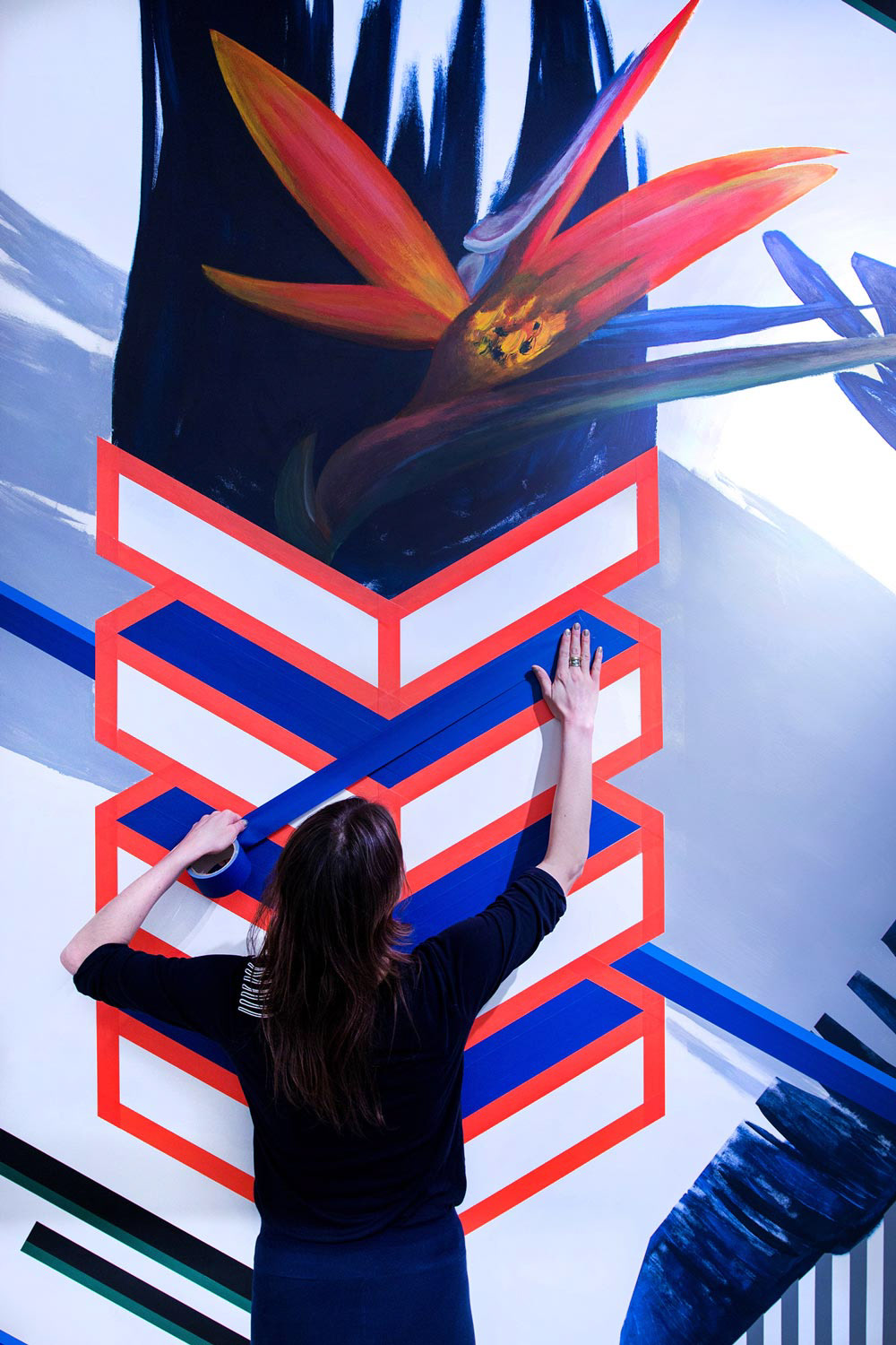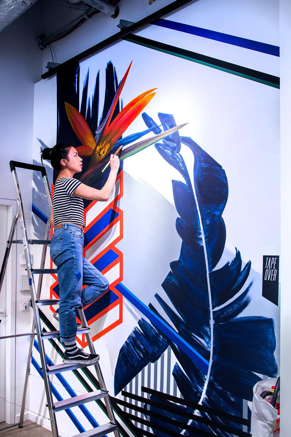 title // flourishing type // permanent tape art & painting mural size // 3x3m material // duct tape, paint artists // LaMia & ENNI place // marc o'polo store in munich / germany