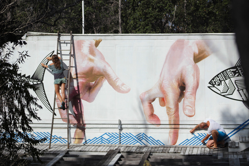 It's a combination of graffiti and tape art on an 12x3m overseas container.