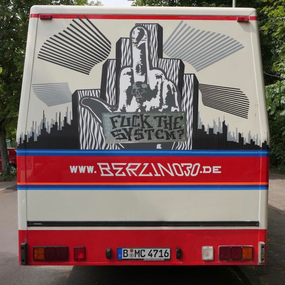 title // tape art bus type // tape art design size // 10x3m material // duct tape & adhesive foil artists // MR GALLE place // berlin / germany