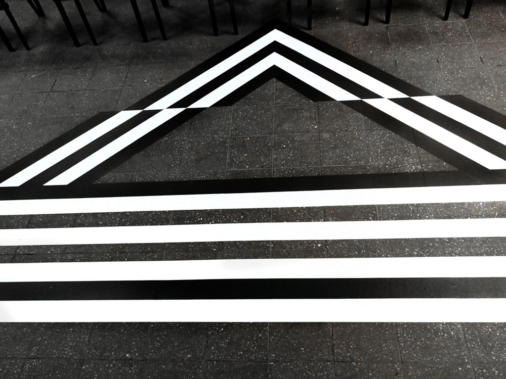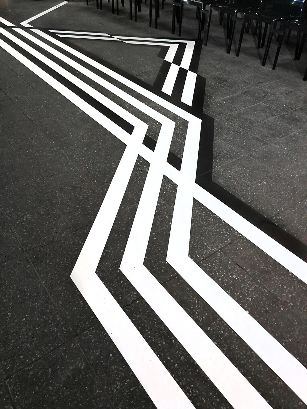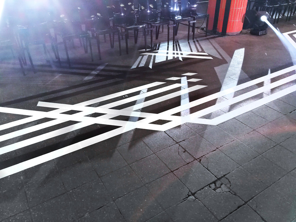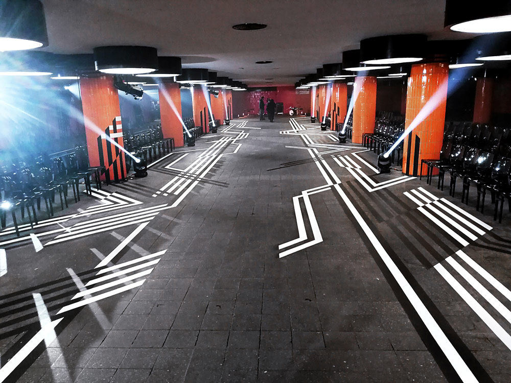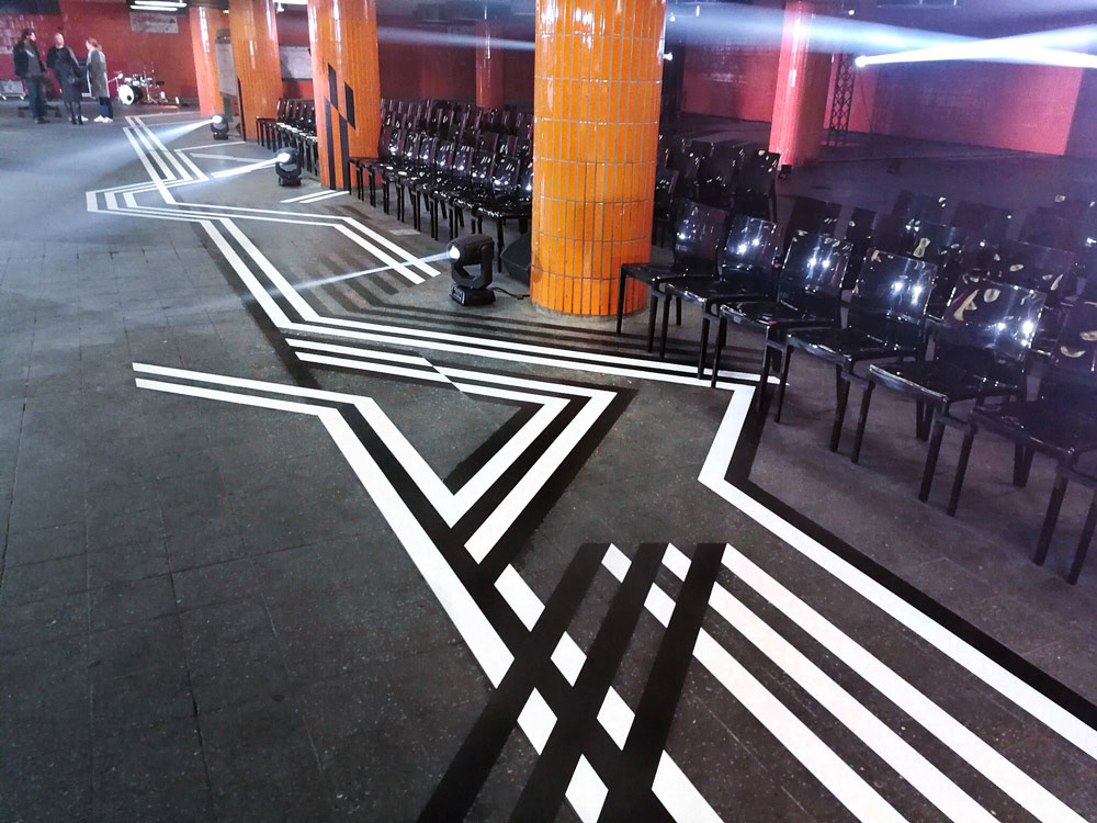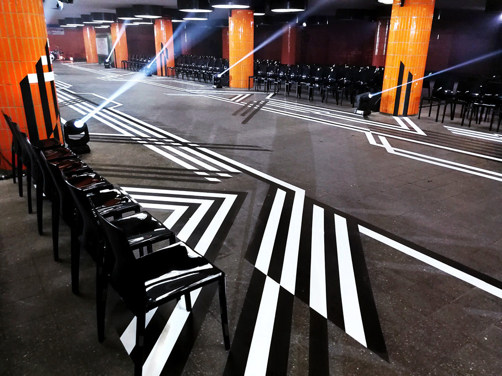 title // tape art catwalk type // tape art design size // 50x6m material // duct tape artists // LaMia & ROB & D´nice place // ICC train station in berlin / germany