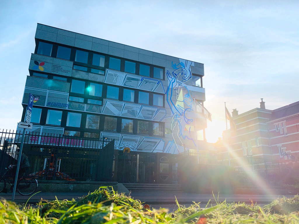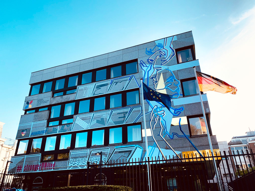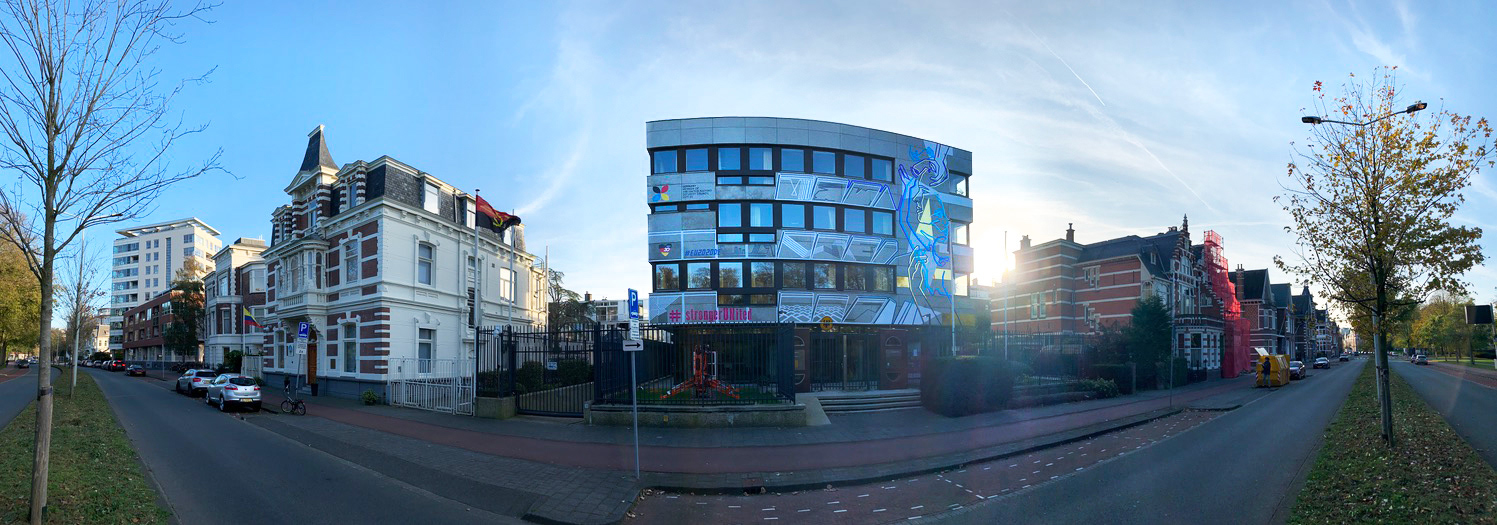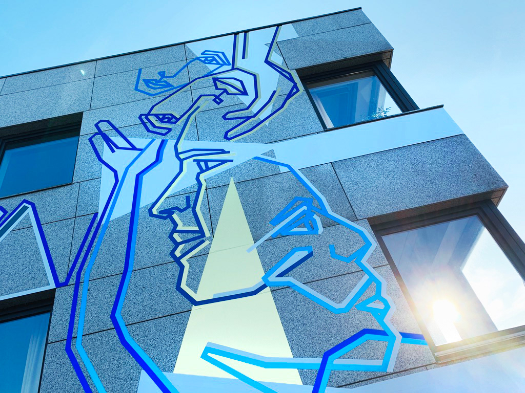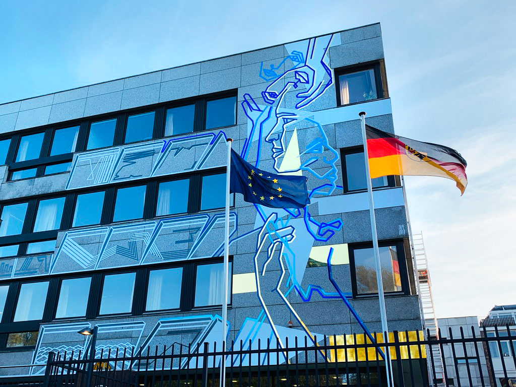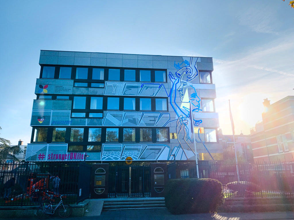 On the occasion of the 30th anniversary of the fall of the Berlin Wall, we created this permanent tape art mural on the facade of the German Embassy in The Hague. We used different adhesive foils from ASLAN.