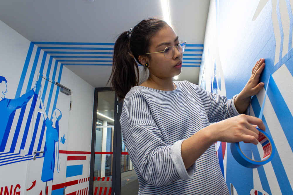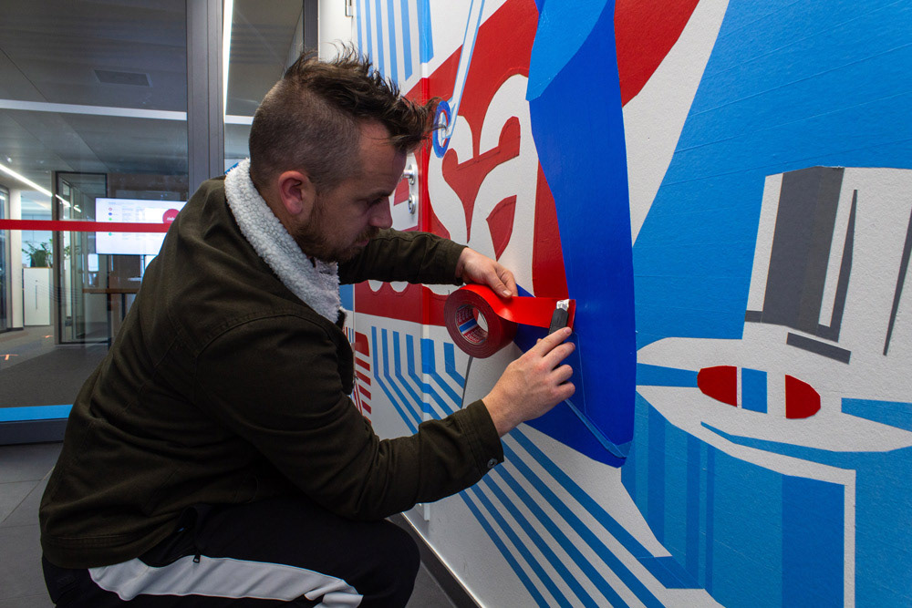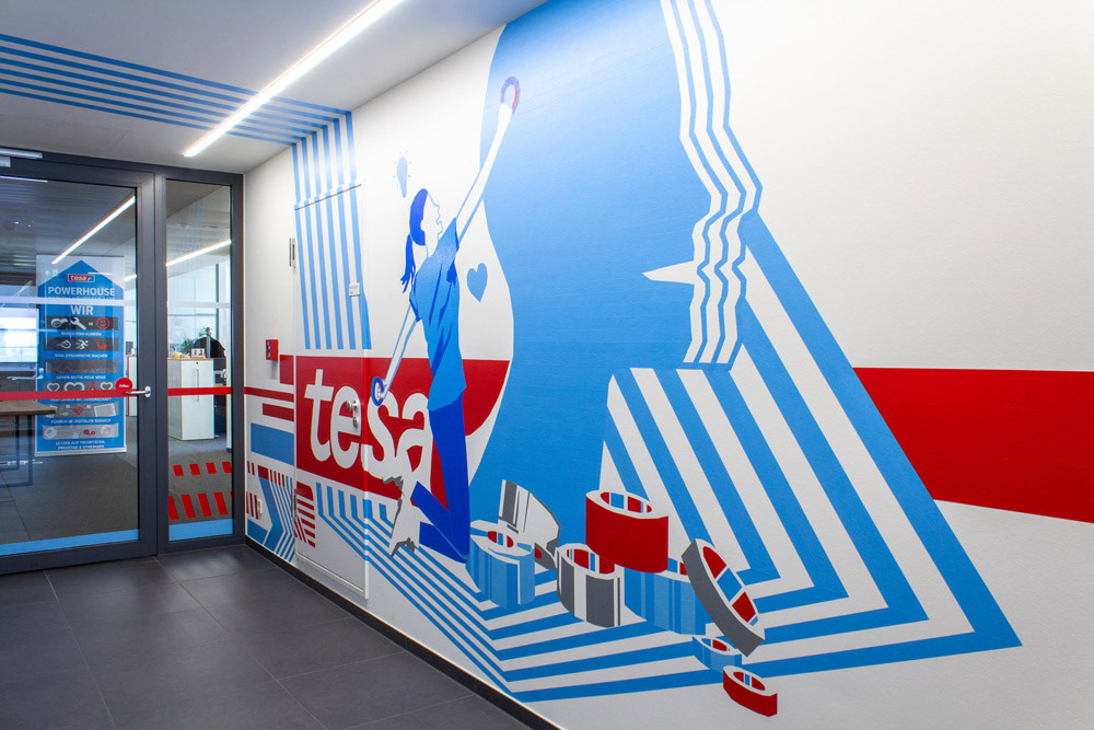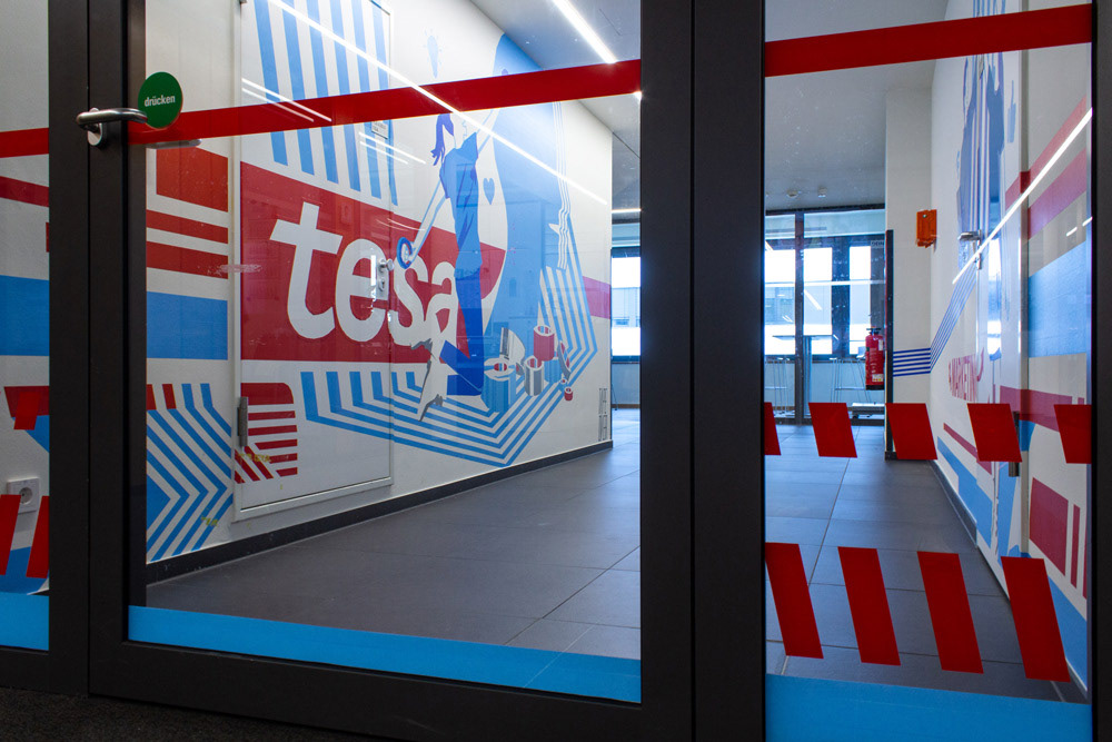 title // tesa type // tape art installation size // 10x3m material // duct tape artists // ENNI & MIC place // tesa headquarter in hamburg / germany