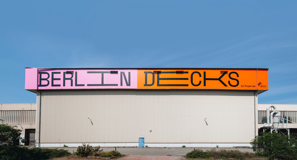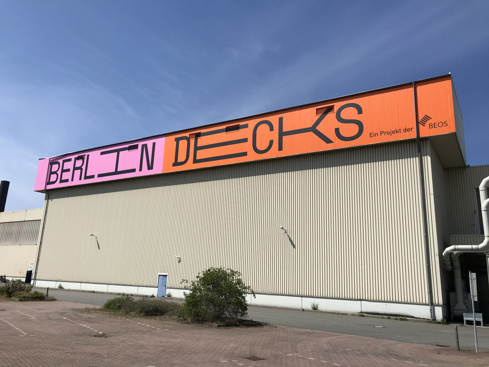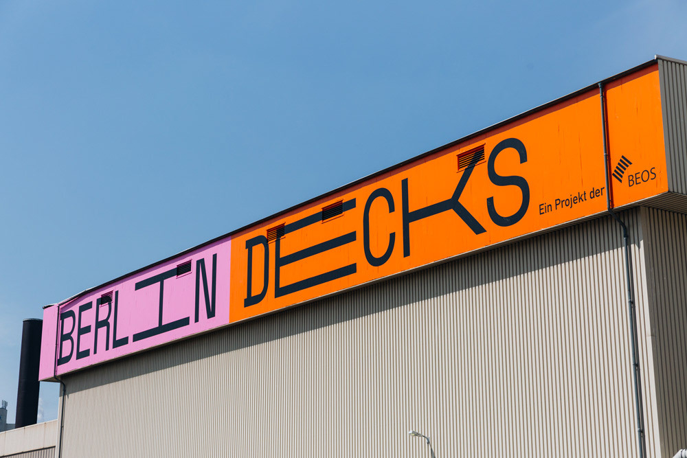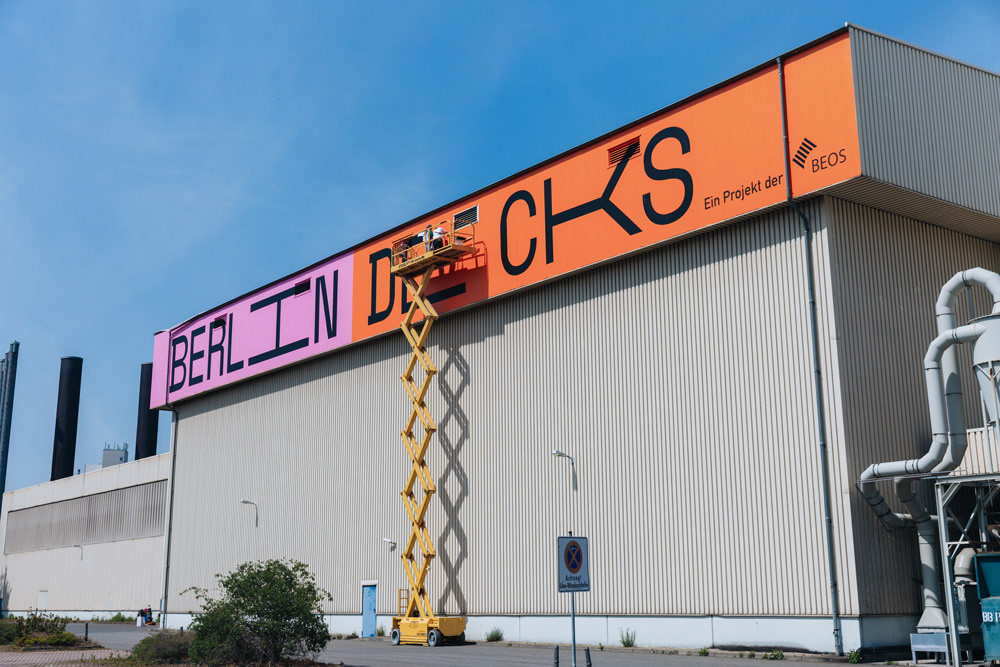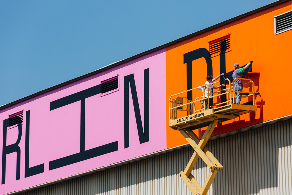 We created this huge 50x4m logo-lettering at a height of 15m on the front of an old industrial warehouse, which is located directly on the Spree canal.