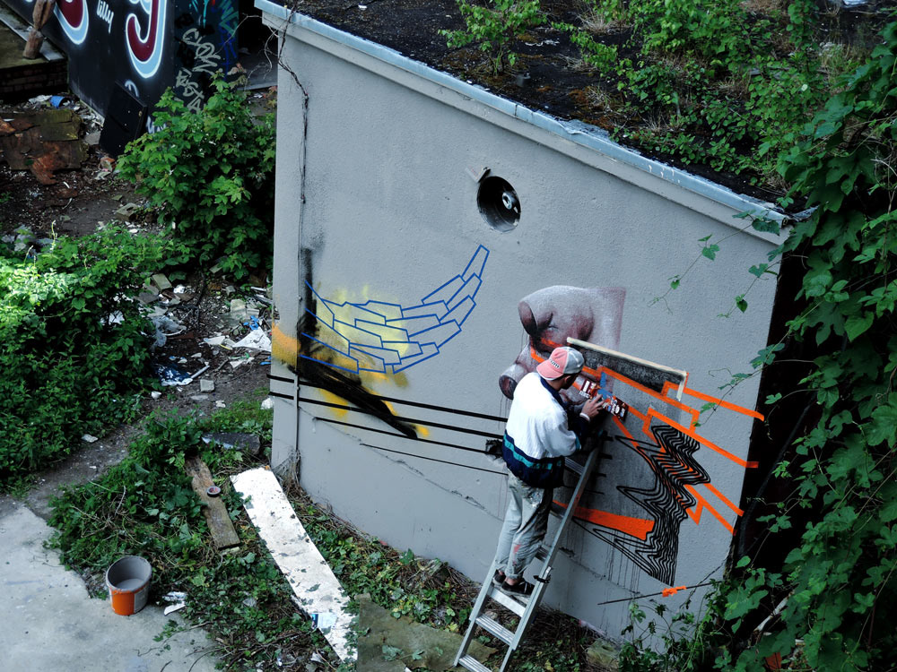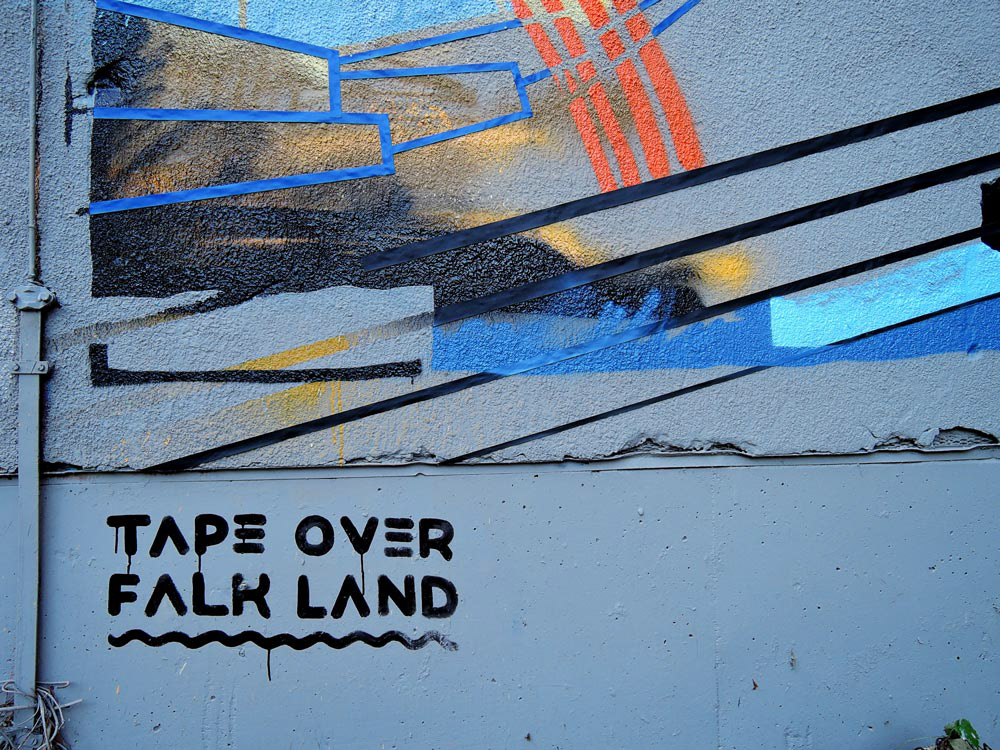 titel // off the wall type // tape art painting size // 4x3m artists // ROB & FALK LAND place // listening station "teufelsberg" in berlin/germany