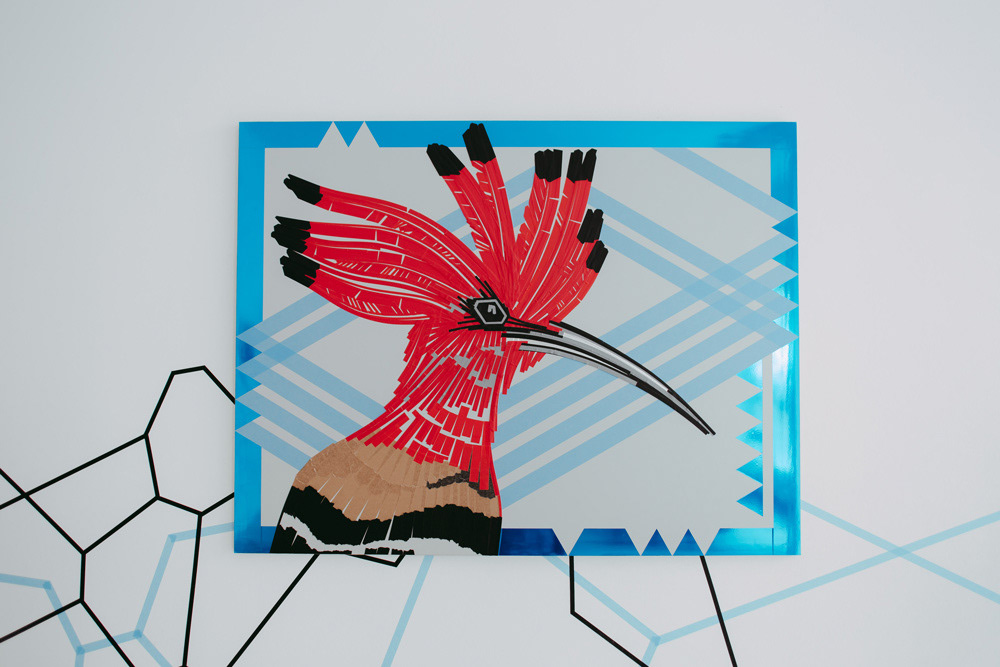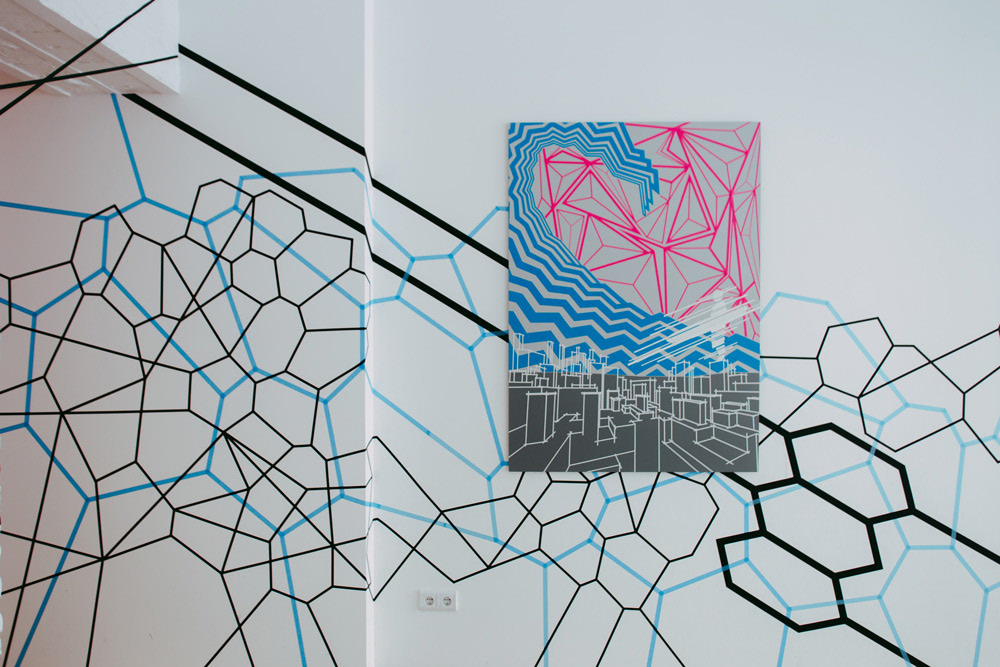 title // we exist to connect type // tape art exhibition size // 12 artworks material // duct tape, masking tape, adhesive foil artists // LaMia & ROB & MR GALLE & DINO MAAT place // cavuspace in berlin / german