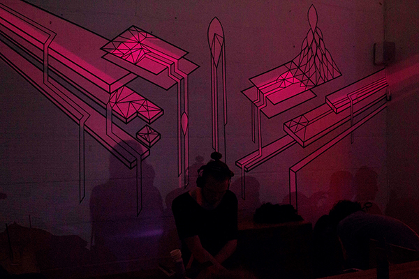 Unsere Partner bei dieser künstlerischen Kollaboration waren die Visual Artists von ONDÉ. Während wir am Tage unser Kunstwerk aus Klebeband entstehen ließen, entwarfen ONDÉ die passende 3D Projektion, welche unsere Tape Art Kreation am Abend in eine 3D Animation verwandelte.
