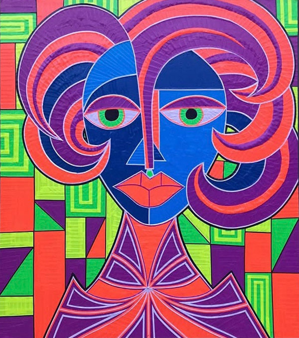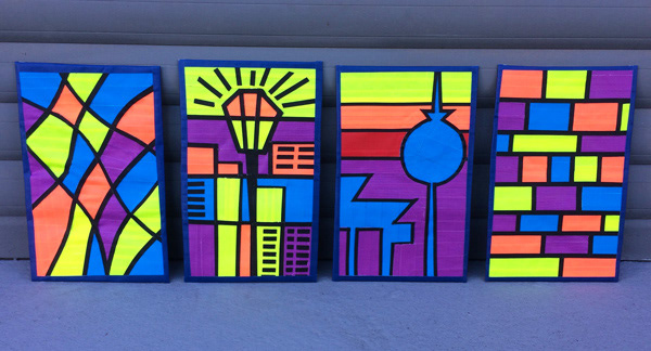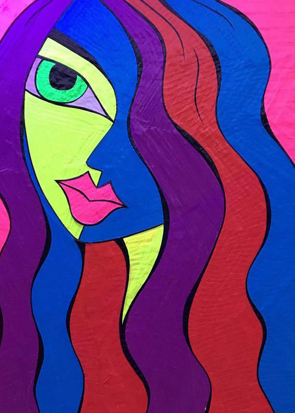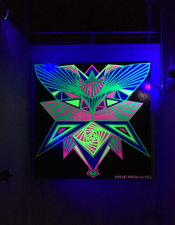 artist name // Verena Kwatsch origin // Germany quote // (K)LEBEN UND (K)LEBEN LASSEN skills // pop art, bright & colorful, neon colors, geometric tape art
